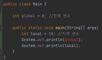 - 같은 클래스 내에 있음에도 해당 변수는 사용이 불가능하다