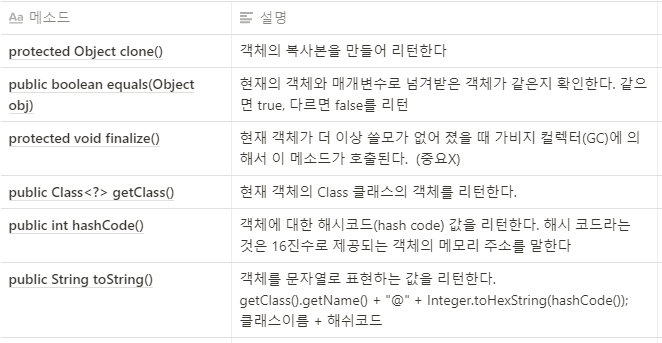 - 자바에서의 최상위 계층 부모 클래스는