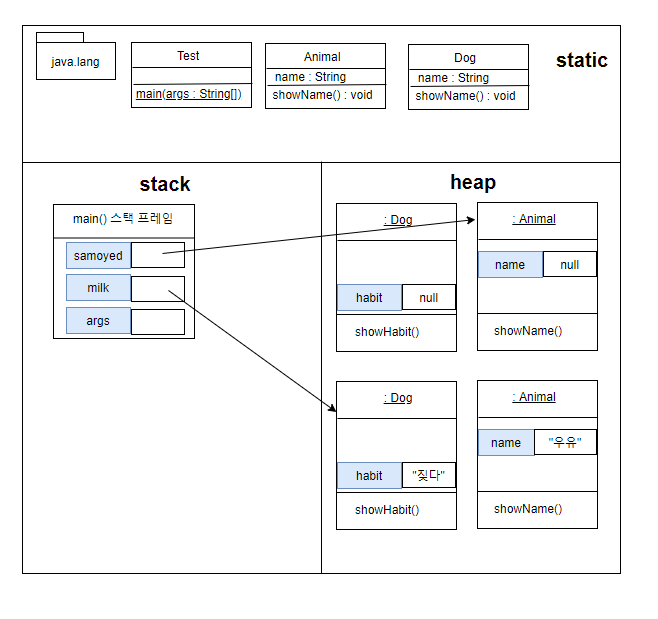 위의 예제에서 세 번째와 같은 인스턴스의 참조가 허용되는 이유는 바로 자바에서의 다형성(polymorphism) 때문입니다.