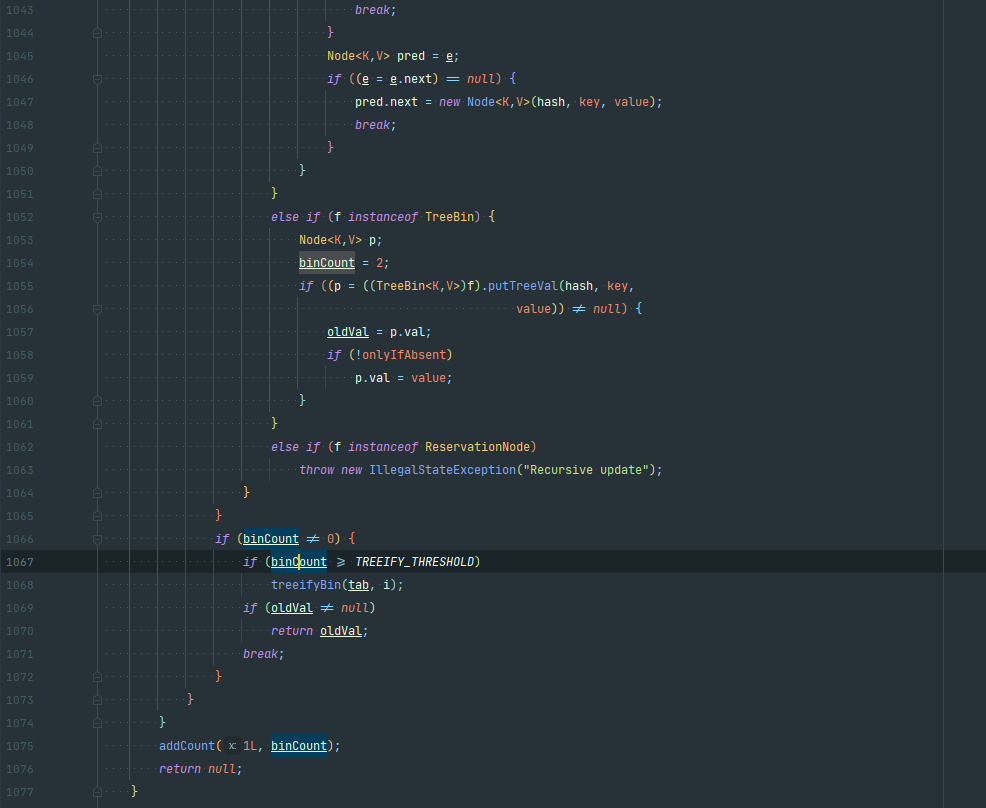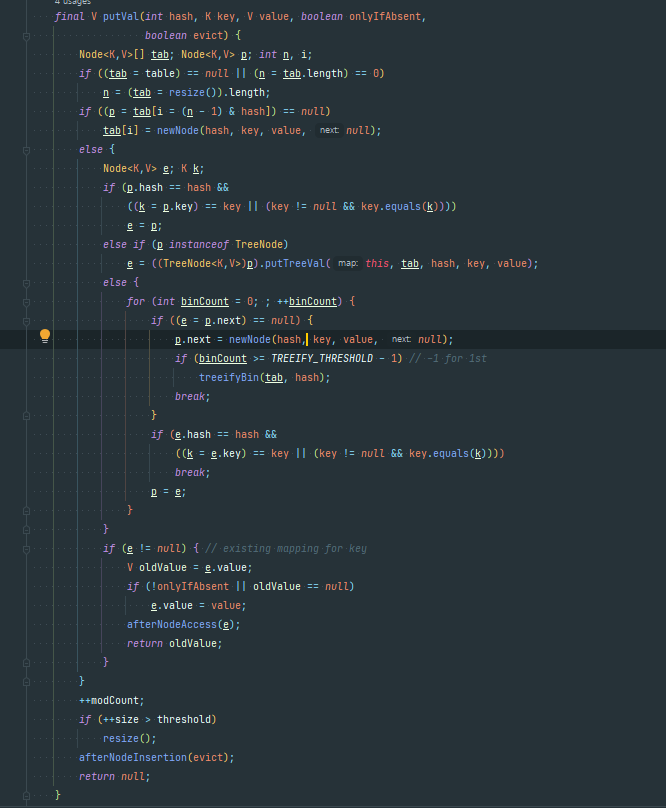 put()은putVal()를 실행한다. 이것이 HashMap의 put 과정의 코드이다
