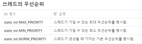 - 쓰레드의 우선순위