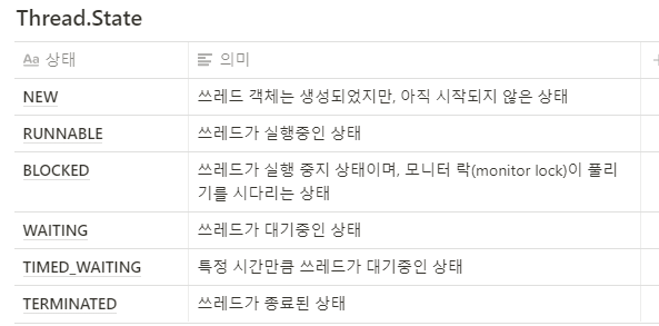 - 쓰레드의 현재 상태를 나타낸다