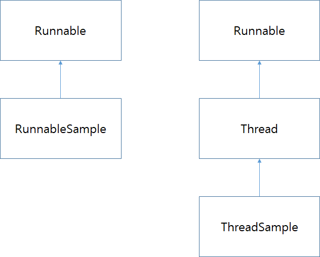 Thread클래스는Runnable인터페이스를 구현한 클래스이므로 어떤 것을 적용 하느냐의 차이이다.Runnable과Thread모두java.lang패키지에 포함되어있다
