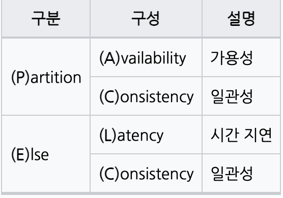 - CAP 이론으로 부족한 부분을 보완하기 위해 네트워크 장애 상황과 정상 상황을 나누어서 설명하는 이론이다.