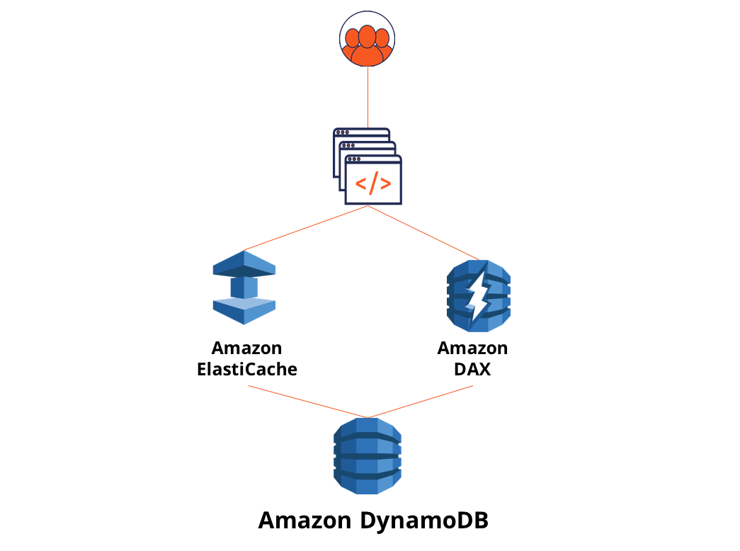 - DynamoDB의 latency가 충분히 낮지 않은 경우 성능을 높이려면 캐시(**DAX[Amazon DynamoDB Accelerator]** 또는 ElasticCache)로 지연 시간을 늘려야한다. 두 경우 모두 캐싱 계층은 데이터베이스 계층 외에 추가 비용이다.