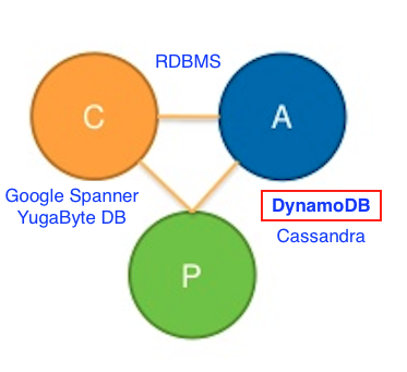 CAP 이론 관점에서 DynamoDB는 최종 쓰기 일관성이 있는 사용 가능 및 파티션 허용(AP)데이터베이스이다. 읽기 전면에서는 최종 일관성 읽기와 강력한 읽기를 모두 지원한다. 그러나 DynamoDB의 강력한 일관성 읽기는 네트워크 지연 및 파티션이 있을때 가용성이 높지 않다. 이러한 오류는 AWS와 같은 퍼블릭 클라우드에서 실행되는 다중 지역/글로벌 앱에서 일반적으로 DynamoDB는 단일 지역으로만 강력하게 일관된 읽기를 제한하여 이러한 오류를 줄이려고 한다. 결과적으로 DynamoDB는 대부분의 다중 지역 앱에 적합하지 않고 단일 지역 앱에도 신뢰할 수 없는 솔루션이 된다.