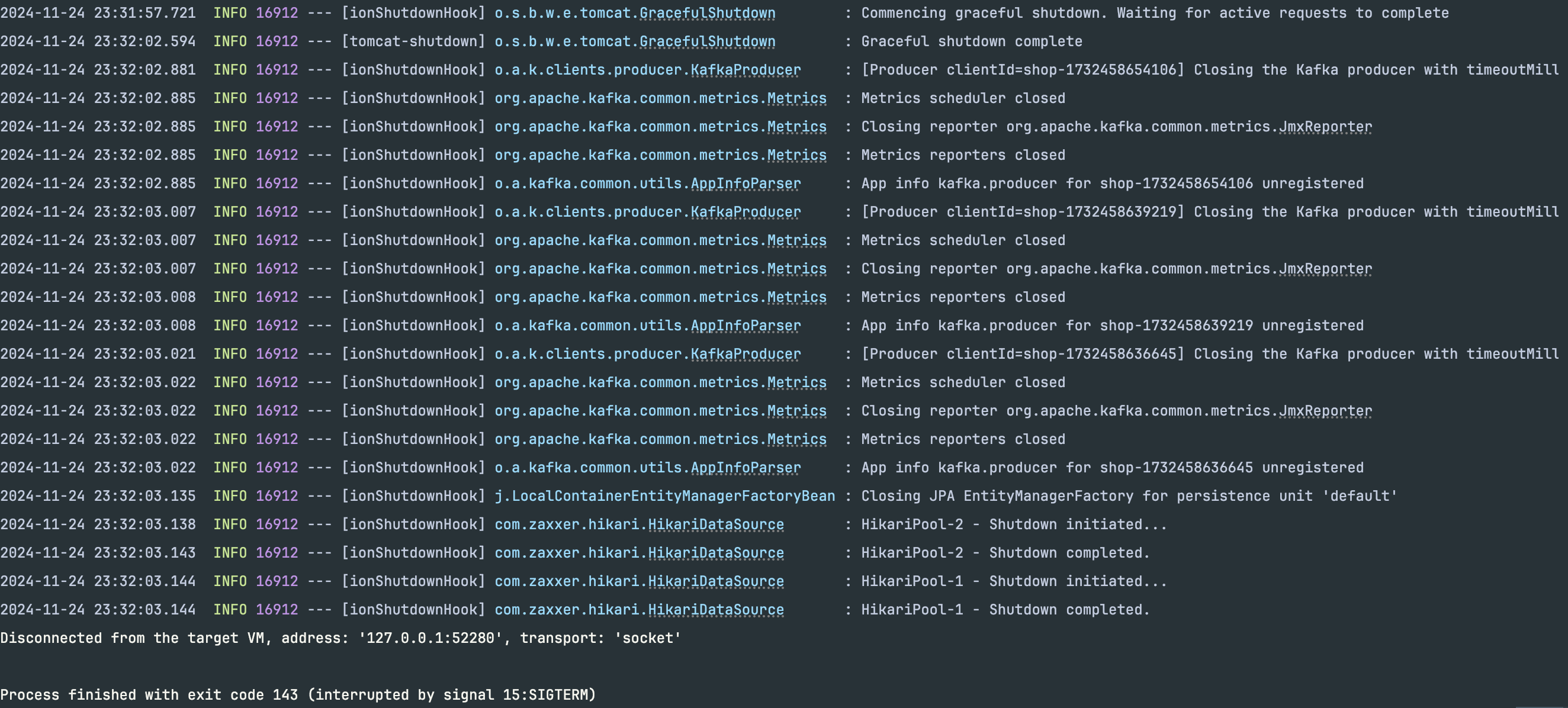 kill -15(SIGTERM) 신호를 받으면 JVM의 Shutdown Hook이 실행되며, Graceful Shutdown이 시작됩니다.